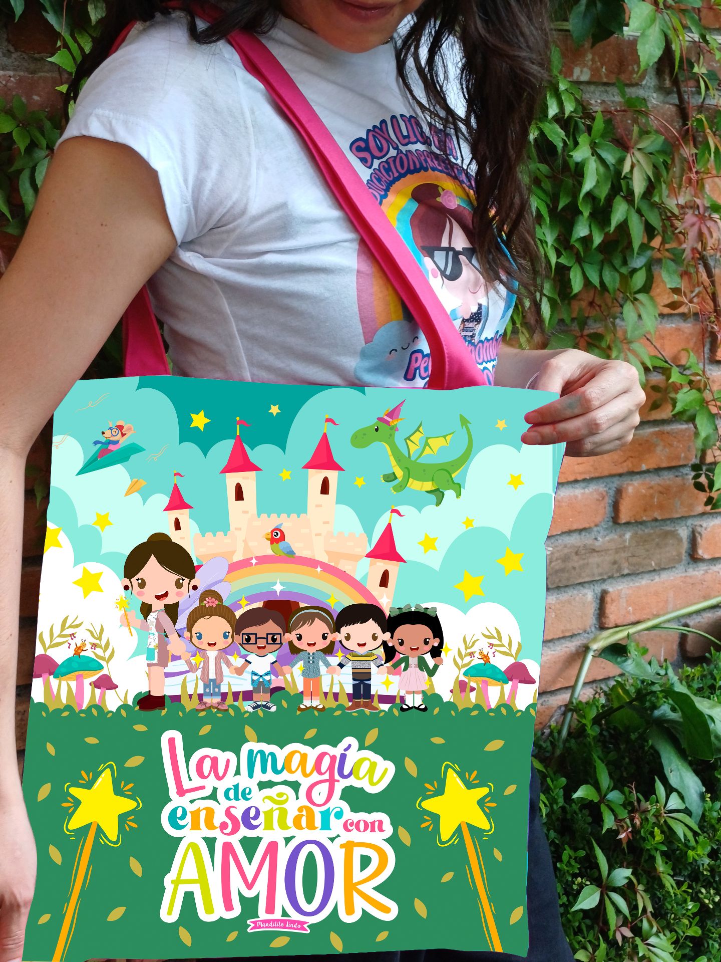Esta Bolsa Linda estilo Tote Bag es para aquellas educadoras que les encanta llevar su personalidad a todas partes a donde van, por eso creamos esta bolsa que te puede acompañar en tu día a día fuera de tu área de trabajo. Esta bolsa es muy amplia y es adecuada para transportar múltiples cosas que desees llevar contigo. Todos nuestros productos están hechos en telas de la más alta calidad, resistentes, con colores vivos que no se despintan; todo el ciclo escolar parecerá que es nuevo, además son telas de secado rápido. Las costuras de bolsas y tiras vienen reforzadas para ofrecerte un producto de calidad. Hacemos envíos a toda la república. Comprar con nosotros es muy seguro y fácil.