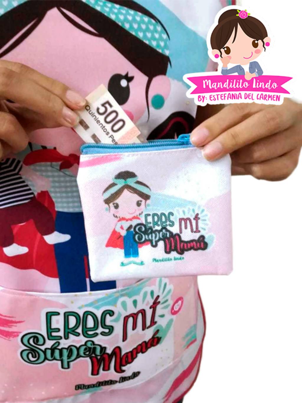 Creamos para ti este hermoso monedero. Te sugerimos armar tu colección con tu mandilito “Super Mamá”. para una ocasión especial revisa todos nuestros modelos, ¡los vas a amar!