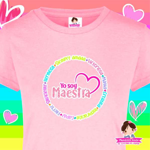 Nuestra playera yo soy maestra corazón, es una playera cuyo diseño representa el orgullo de educar. Atrévete a mostrar tu personalidad con una playera de Mandilito Lindo y descubre todos los diseños que tenemos en nuestra página web para ti.